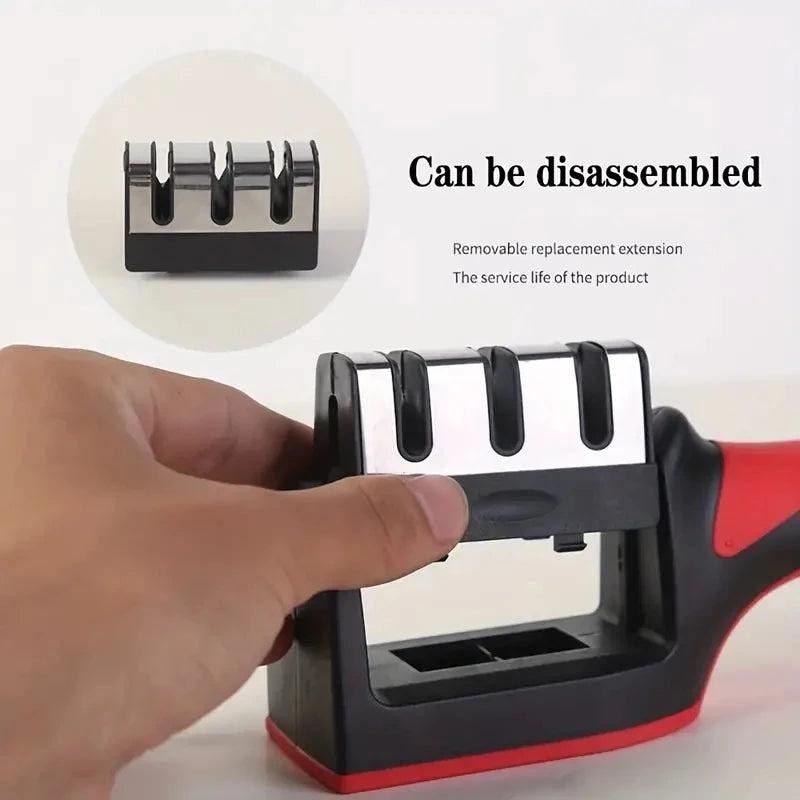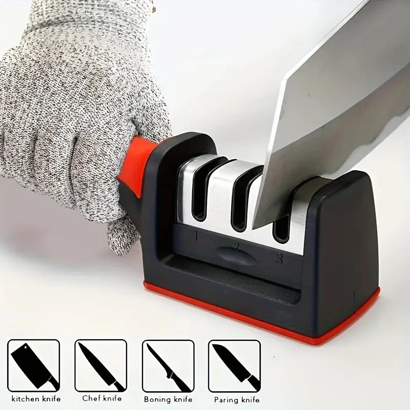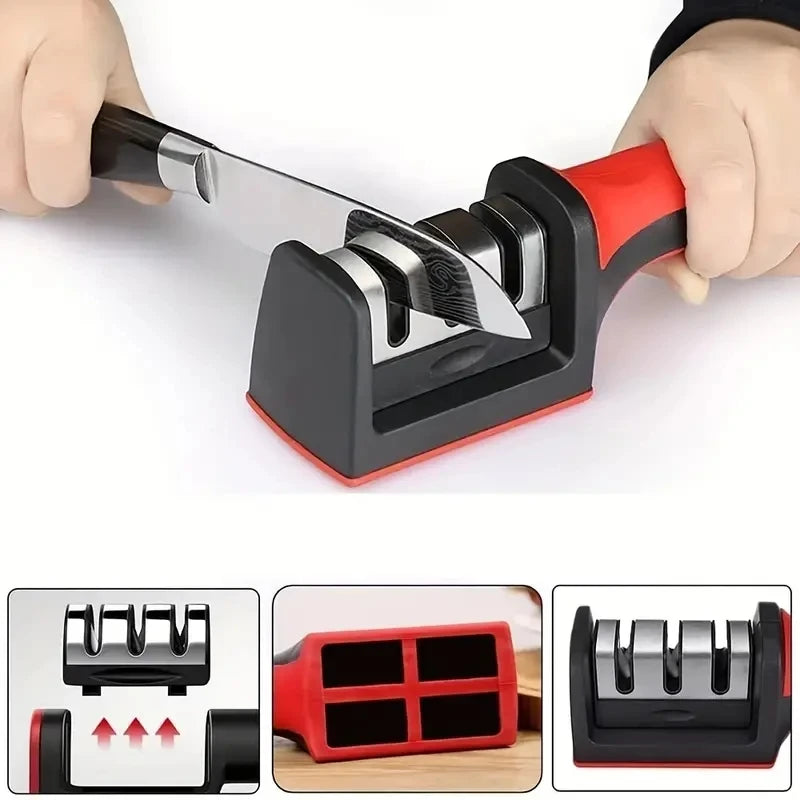 Kitchen 3 Segment Knife Sharpener Household Multi-Functional Hand-Held 3 Purpose Black Sharpening Stone Kitchen Knives Gadget